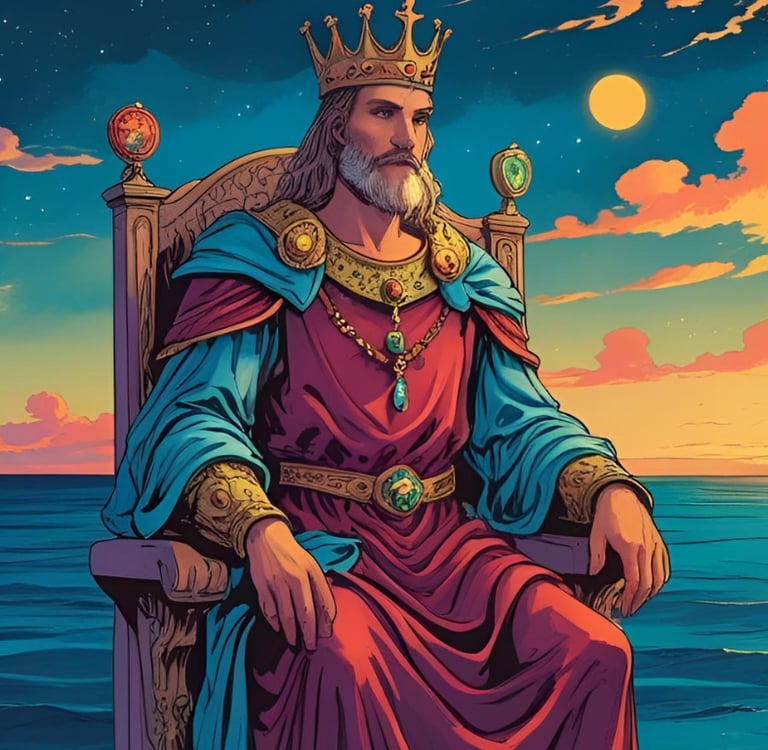 Era el Rey que podría ser, si seguía lo que sentía. Un Rey que tiene un grado de poder para dar y ayudar desde lo emocional, desde el sentir, con conocimientos y manejos profundos de lo inconsciente, del océano que todos llevamos dentro. No quiero decir que yo era poderoso por mirar esa carta, pero sí que algo, un fragmento, un aspecto de esa figura me decía: Vos tenés algo de esto dentro, tal vez debas dejarlo fluir y ser.